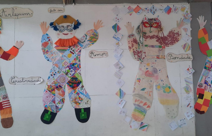 O envolvimento foi tanto, que todas as turmas construíram o seu Arlequim.