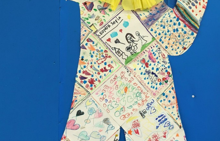 Verificou-se um grande entusiasmo em decorar o quadradinho de papel para o fato do Arlequim. Porque não, pedir a colaboração de outros para o fato ficar mais rico? Levamos a lenda a todas as turmas, e foi pedida a participação de todos, deixando um quadradinho de papel por turma, para decorarem.