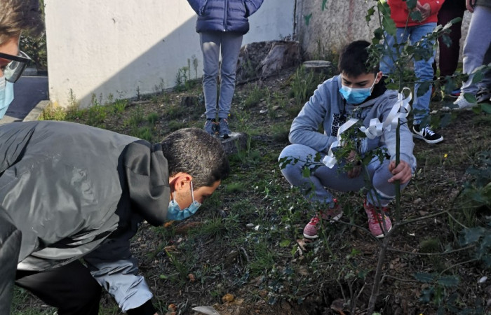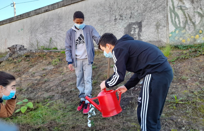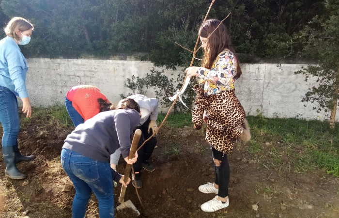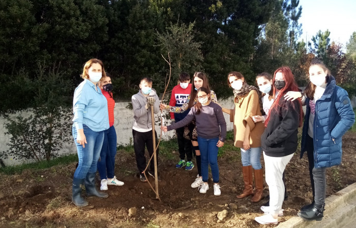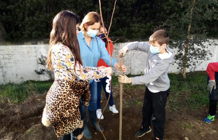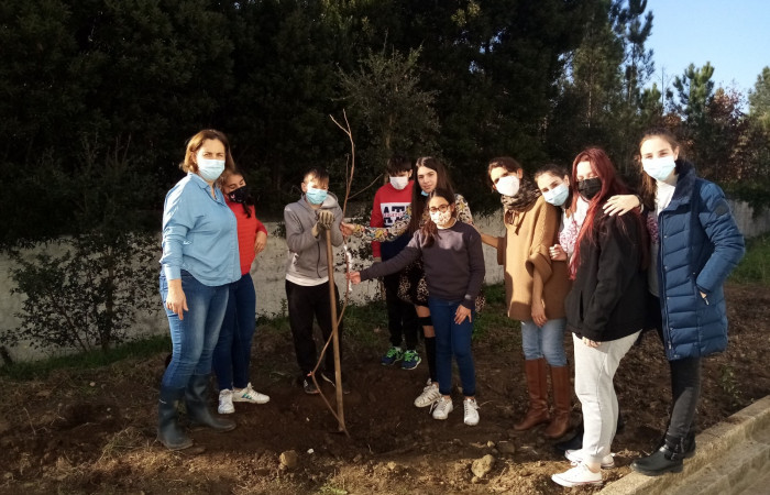 Os alunos da Escola Básica de S. Pedro da Cova ofereceram presentes ao Planeta Terra, plantando três árvores nos espaços exteriores da escola.