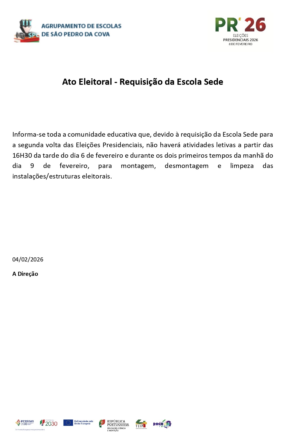Realizou-se, no dia trinta de janeiro de dois mil e vinte e seis, na escola sede, a cerimónia de tomada de posse da nova Presidente da Associação de Pais da Escola Básica de São Pedro da Cova, Cristina Almeida Santos, que assume funções para o mandato 2025/2026.