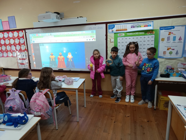 Consistiu no visionamento de uma história cujo título foi ” O Dia de Reis”, seguiu-se um diálogo/reflexão sobre as tradições alusivas a se dia.