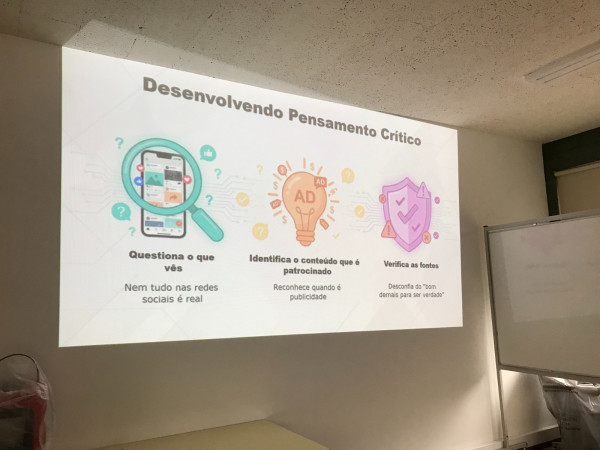Nas restantes turmas, foram igualmente dinamizadas sessões de debate centradas nos perigos das redes sociais e na influência da Inteligência Artificial. Nestas sessões, os alunos puderam conhecer e identificar alguns dos riscos associados à utilização de diferentes plataformas digitais, como o TikTok, o Roblox, o Instagram, o Discord e o WhatsApp, riscos esses que podem ser potenciados pelo recurso à Inteligência Artificial, bem como refletir sobre estratégias conducentes a uma navegação mais segura.