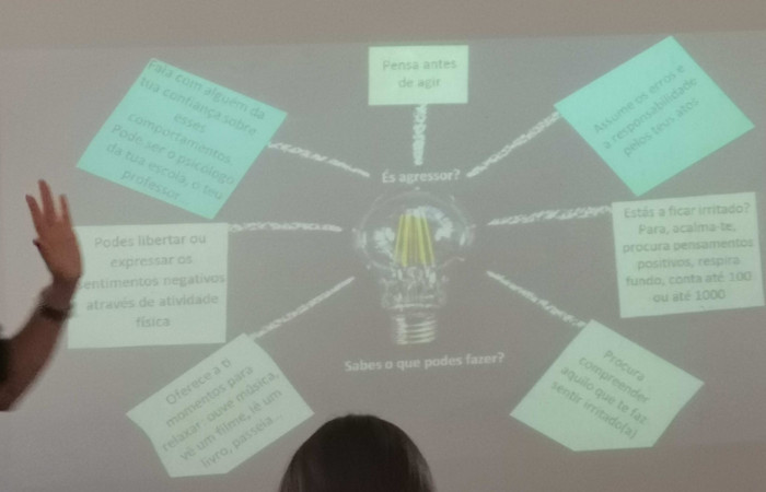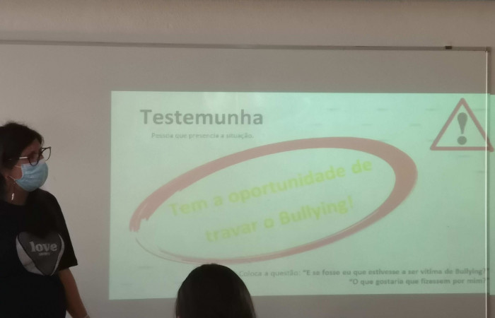 A equipa do Projeto TEIIA dinamizou na turma do 8.º A uma ação de sensibilização dedicada ao tema “Estou IN contra o Bullying “. No decorrer da sessão os alunos da turma refletiram/esclareceram dúvidas sobre esta temática, infelizmente, tão noticiada na atualidade.