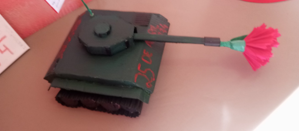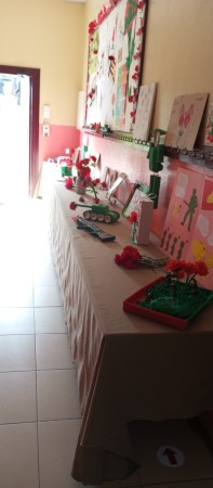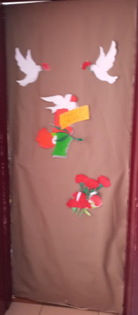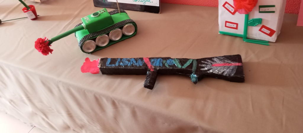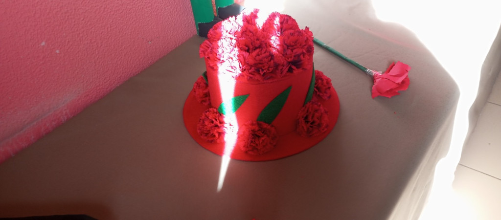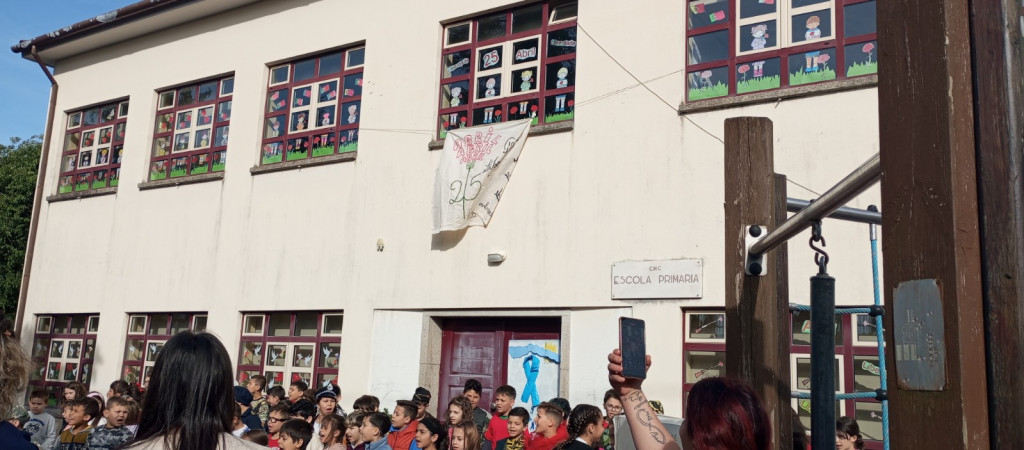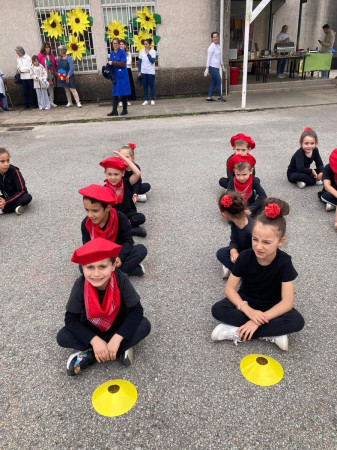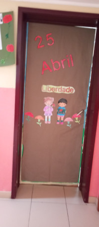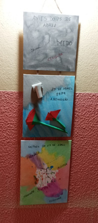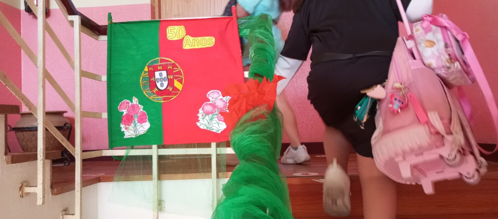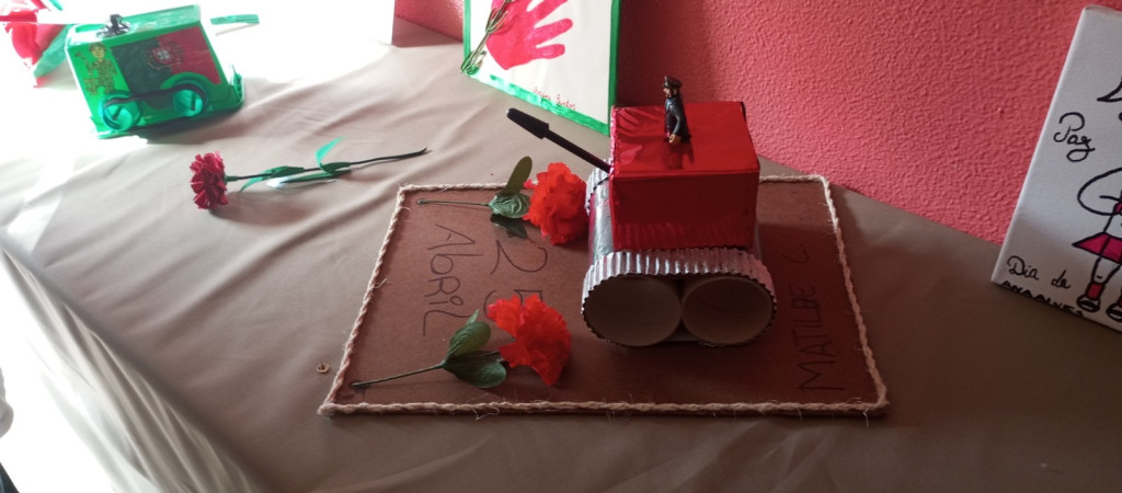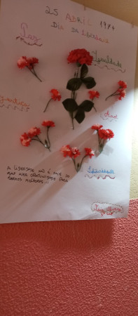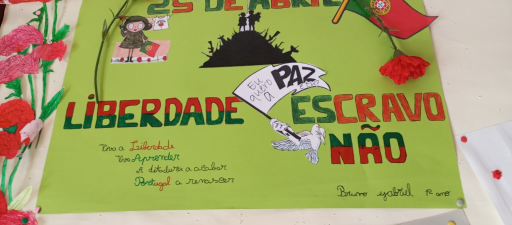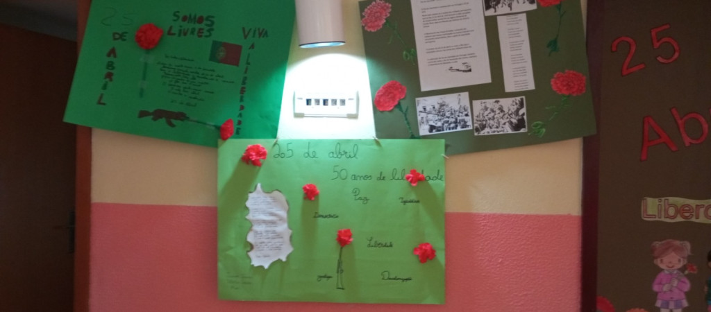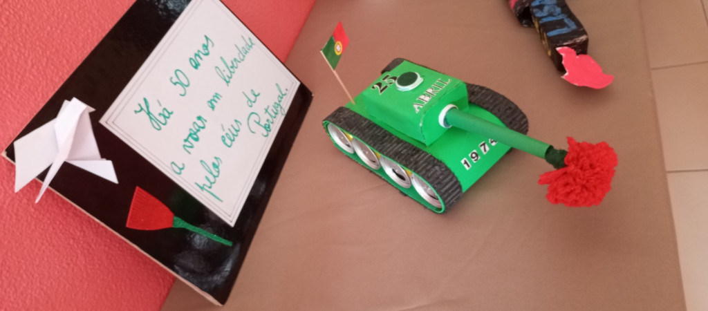 Exposição de trabalhos realizados pelos alunos, em família. Entoação da canção icónica da revolução "Grândola, Vila Morena”.