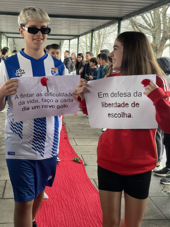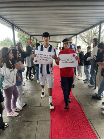 Através do PROJETO MISSÃO POSSÍVEL! PAFC 9E, e a pensar nas escolhas de futuro, alunos de toda a escola desfilaram com figurinos a rigor conforme a profissão escolhida! E todos declamaram as frases que tinham formulado, alusivas à Liberdade de Escolha da Profissão.