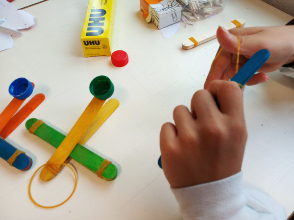 Foi assim, neste contexto, que a viagem de hoje começou no Clube Ciência Viva na Escola do AESPC! Uma viagem de inventos, inventores e engenhocas que nos levou à construção de borboletas autómatos, catapultas e carros movidos a elástico, com recurso a materiais de baixo custo e/ou reutilizáveis. Também tivemos tempo para conversar sobre o princípio de funcionamento destas engenhocas divertidas e ficar a saber algumas aplicações no dia a dia dos conceitos físicos envolvidos. Afinal, a Física está mesmo em todo o lado! Foi mais uma fantástica aventura onde houve espaço para criar, fazer, experimentar, construir e partilhar, onde tentativa e erro se conjugaram de forma divertida e inspiradora.