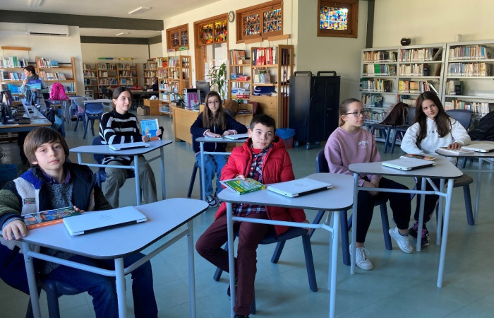 Hoje, dia 27 de fevereiro, tivemos na biblioteca escolar os nossos representantes no Concurso Nacional de Leitura – fase concelhia (prova escrita): Duarte e Rodrigo (1º ciclo); Inês e Juliana (2º ciclo); Carolina e Rita (3º ciclo).