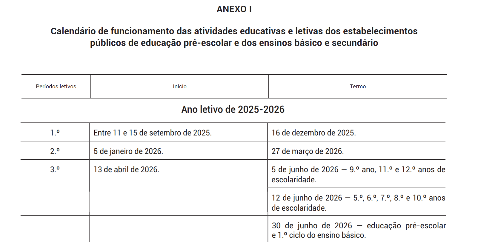 Foi publicado o Despacho n.º 8368/2024, de 25 de julho, que aprova os calendários, para os anos letivos de 2024/2025, 2025/2026, 2026/2027 e 2027/2028, dos estabelecimentos públicos de educação pré-escolar e dos ensinos básico e secundário, dos estabelecimentos particulares de ensino especial, bem como o calendário de provas e exames dos ensinos básico e secundário.