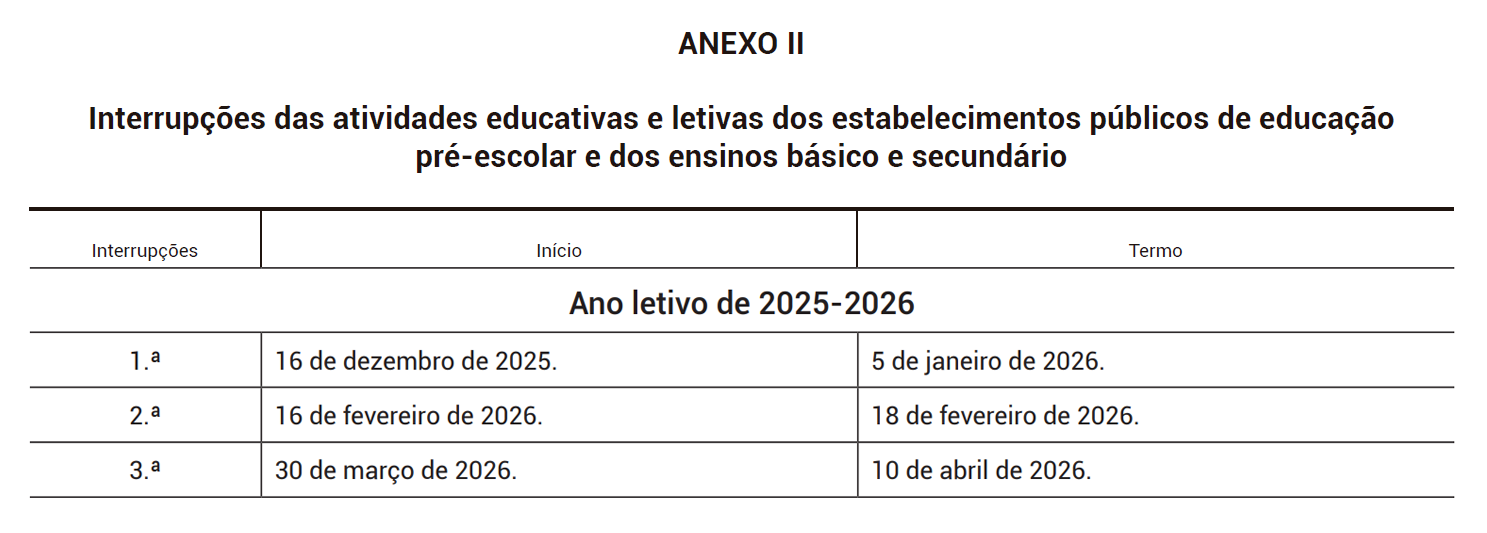 Data de Término do 1.º Semestre: 28 de janeiro de 2026