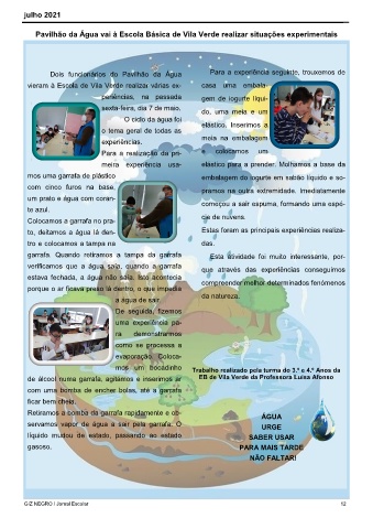 garrafa. Quando retiramos a tampa da garrafa Esta atividade foi muito interessante, por-