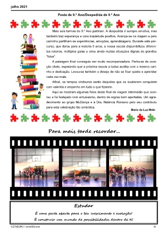 ção cheio, esperando que a próxima escola a todos acolha com o mesmo cari-