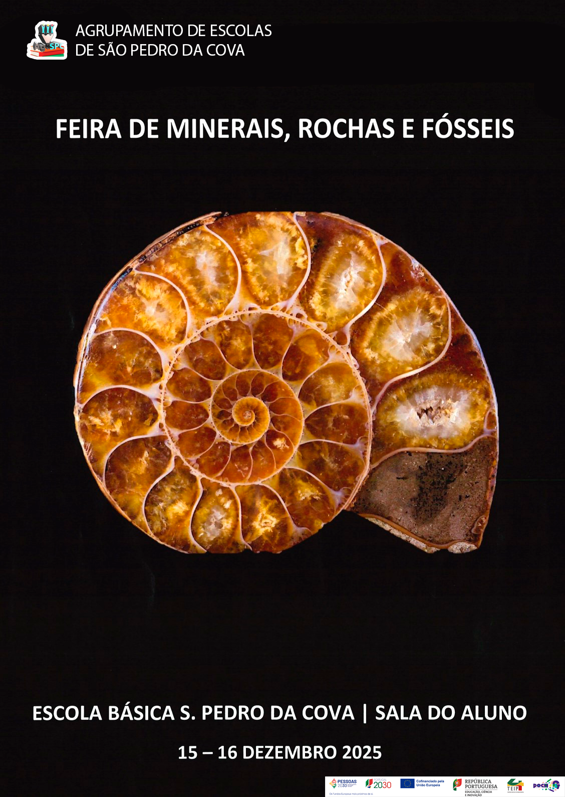 A Feira de Minerais, Rochas e Fósseis está de volta ao nosso Agrupamento. O Grupo disciplinar 520 vem por este meio convidar toda a Comunidade Escolar a visitá-la na sala dos alunos, da Escola Sede, nos dias 15 e 16 de dezembro.