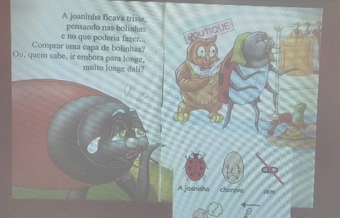 Consistiu no visionamento de uma história cujo título foi ”Uma Joaninha diferente…” de Regina Célia Melo, seguiu-se um diálogo cujo objetivo existiu numa reflexão sobre as desigualdades sociais e preconceito, trabalhando a inclusão social.