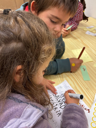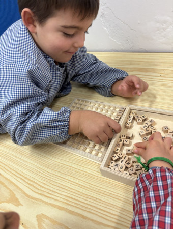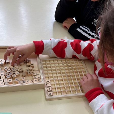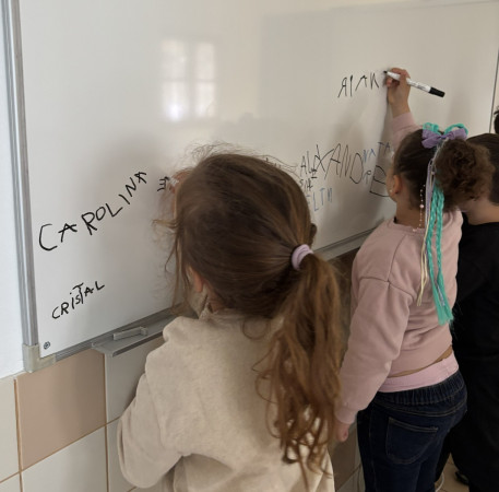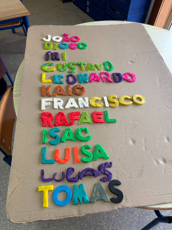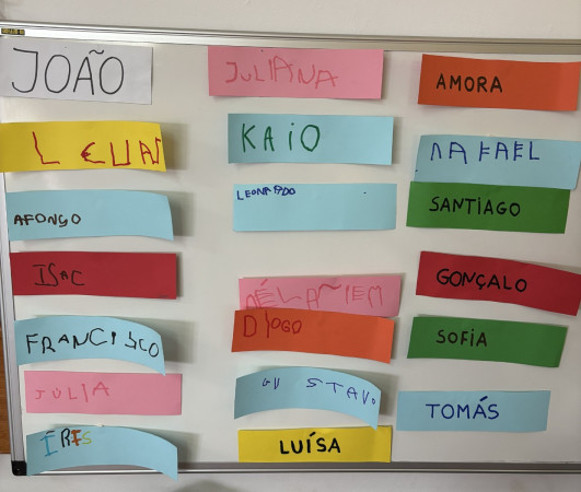 Uma das estratégias utilizadas no desenvolvimento do projeto é a escrita do nome; a divisão silábica do mesmo; os jogos de rimas; o reconhecimento das letras que o compõem e que se encontram noutras palavras: “A letra do meu nome está ali…”. “Há uma letra do meu nome que aparece duas vezes…”.