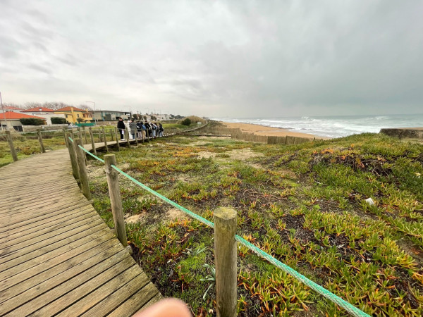 Posteriormente, acompanhados por uma guia especializada da Associação Portuguesa para a Conservação da Biodiversidade (FAPAS), as turmas percorreram as dunas do litoral. Durante esta fase, os alunos não apenas absorveram conhecimento, mas também contribuíram para a preservação do ambiente ao recolherem lixo da praia. Além disso, puderam observar a erosão costeira ao longo dos anos, resultado da poluição, construção de casas e destruição de plantas nas dunas, entre outras.