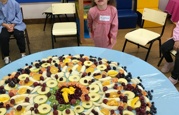 De modo a promover o consumo de fruta, comemoramos o Dia Mundial da Alimentação, com uma pizza de fruta. Para além de colorida, estava muito saborosa, e foi um lanche muito saudável.