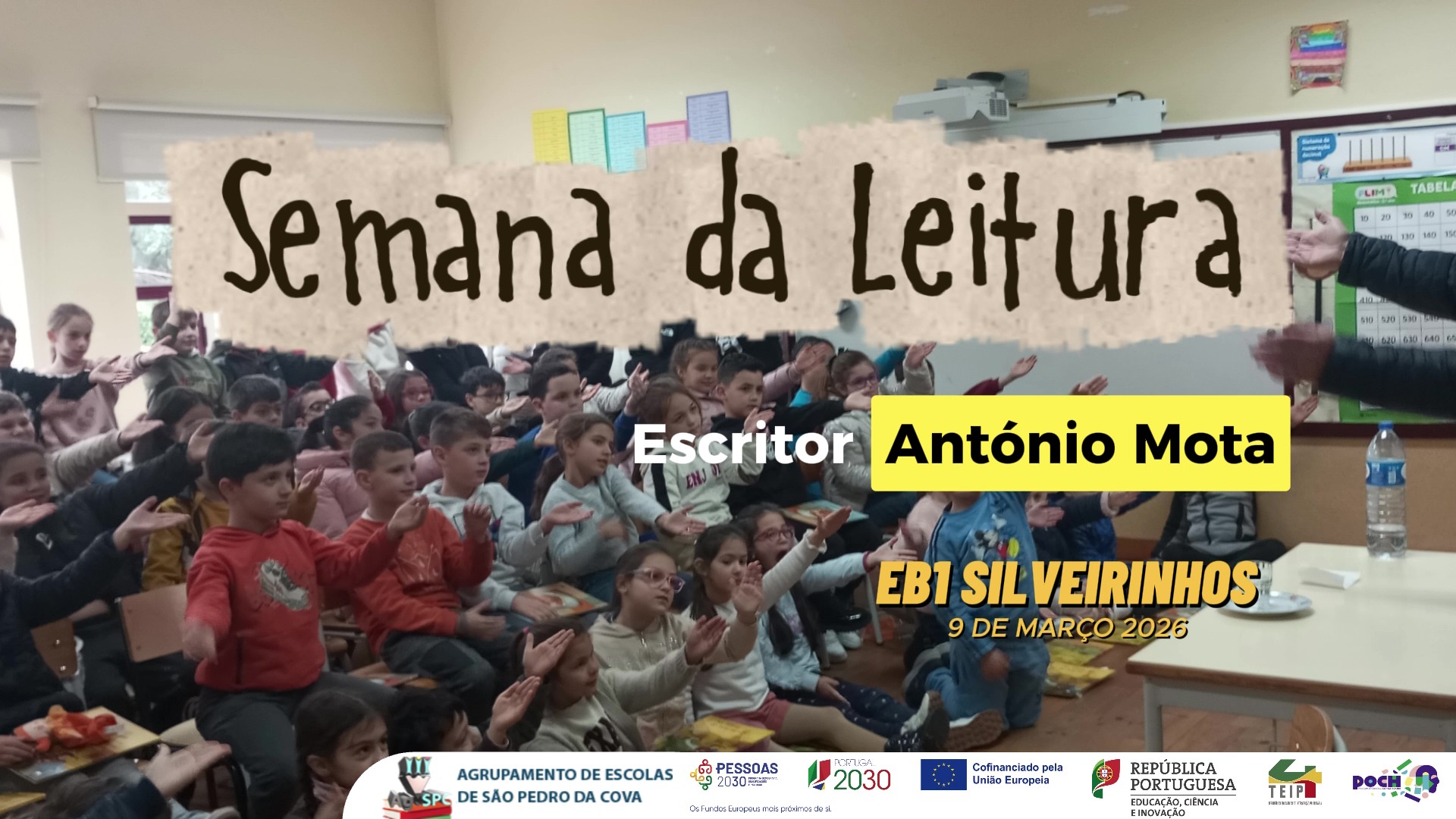 O escritor António Mota veio à escola EB1 de Silveirinhos, no âmbito da Semana da Leitura. Houve lugar a inspiração literária e a ensinamentos de vida, através de um cunho humorístico, apanágio do autor. A sua humildade e descontração, próprias do génio, tomaram conta do momento, que com toda a certeza ficará na memória dos nossos alunos.