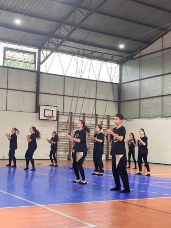 Após o intervalo, alunos e professores assistiram a um breve momento de reflexão, através de mensagens visuais, escritas e através da dança.