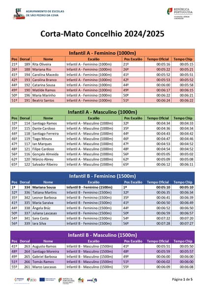 Informa-se toda a comunidade educativa que o documento com as classificações resultantes do Corta-Mato Concelhio 2024/2025, já se encontra disponível.