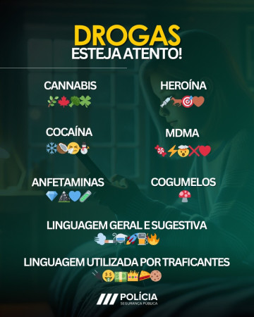 Os pais devem estar atentos ao duplo significado da utilização de determinados emojis, pois podem estar conotados a conversas relacionadas com o consumo/tráfico de drogas. Apesar desta realidade ser (ainda) pouco comum entre a comunidade escolar, a PSP está atenta a este fenómeno, atuando preventivamente nos estabelecimentos de ensino através de ações de sensibilização.