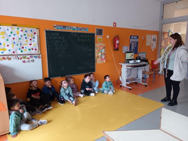 Numa das salas do Pré-Escolar no Centro Escolar Carvalhal Mó, está a ser desenvolvido um Projeto de Comunicação. Primeiramente, as crianças criaram palavras bonitas, com as suas Educadoras, que vamos usá-las nesta atividade!