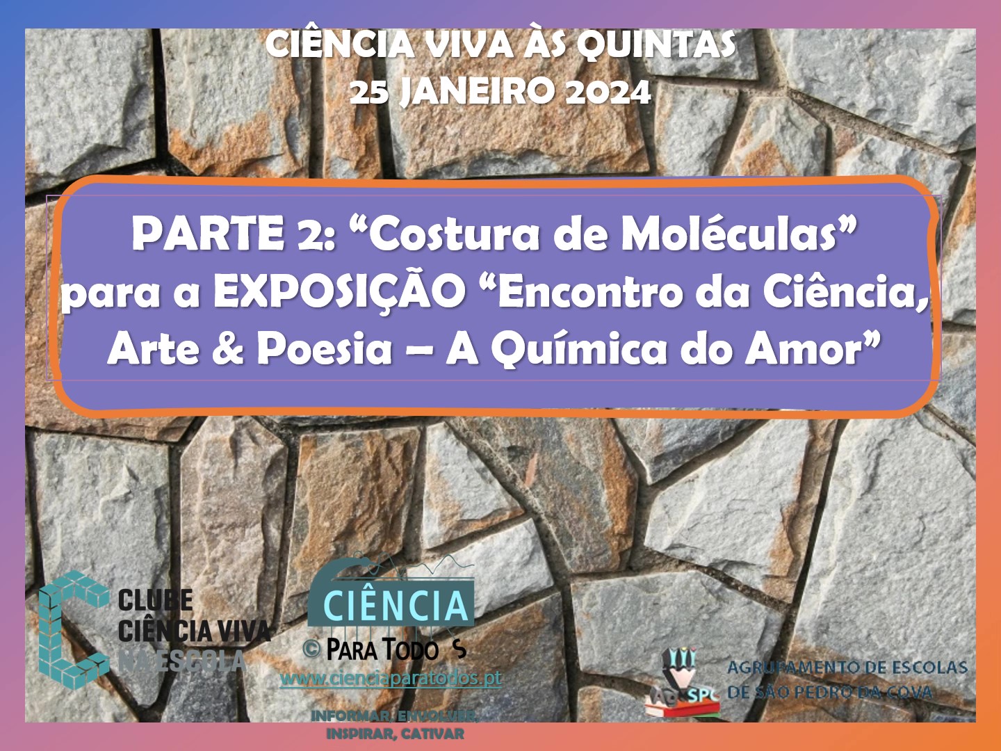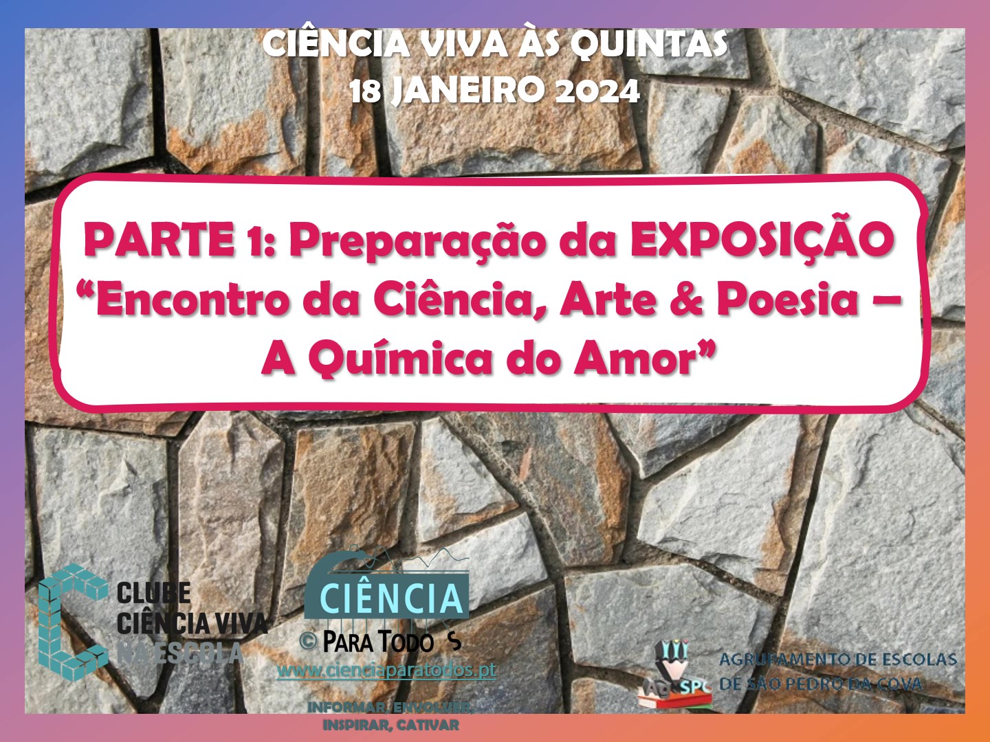 Na tarde de 25 de janeiro, a Equipa do Clube Ciência Viva na Escola do AESPC e o seu parceiro de atividades (PDC - CIÊNCIA PARA TODOS, www.cienciaparatodos.pt) continuaram a preparação e a organização da exposição interativa “Encontro da CIÊNCIA, ARTE & POESIA – A Química do Amor” para toda a Comunidade Escolar/Educativa do Agrupamento de Escolas de São Pedro da Cova.