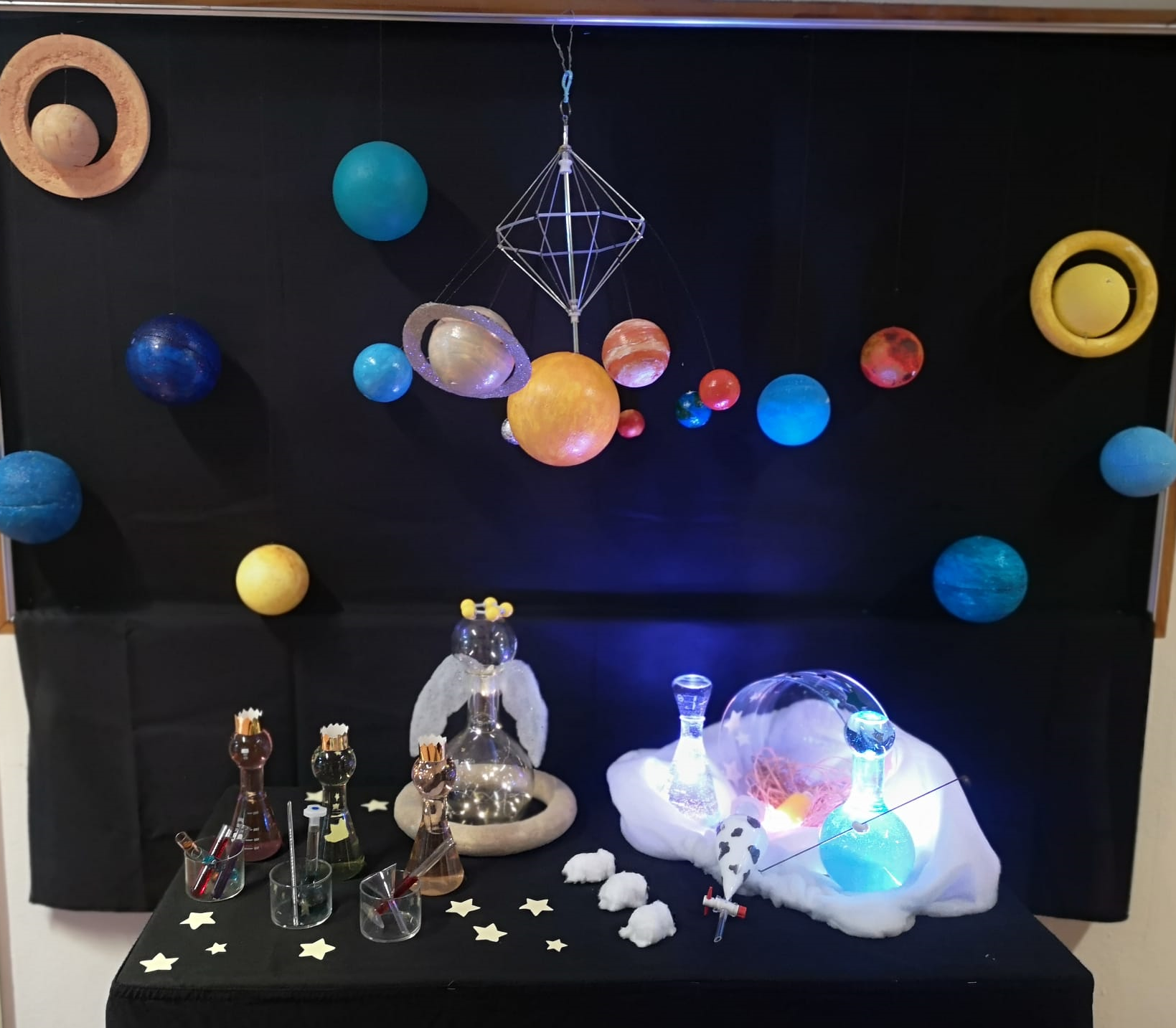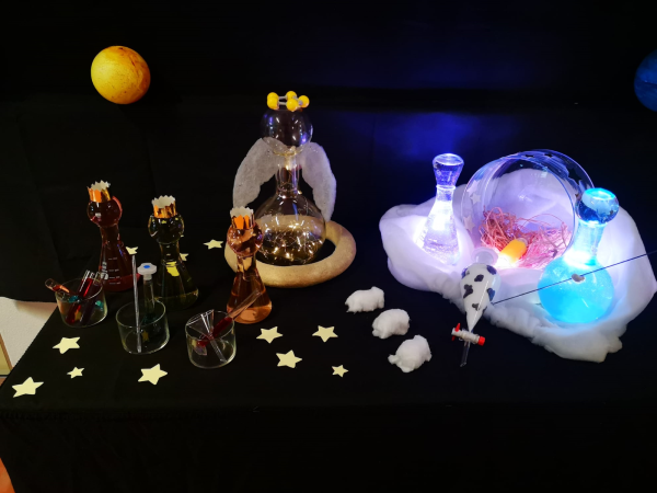 O Presépio Químico foi mais uma vez elaborado na nossa escola, contando com a criatividade e colaboração dos alunos e das professoras de Físico-Química, de modo a assinalar esta época natalícia. Como já vem sendo tradição, encontra-se a colorir e a abrilhantar o átrio de entrada, junto aos Serviços Administrativos/secretaria da escola sede.