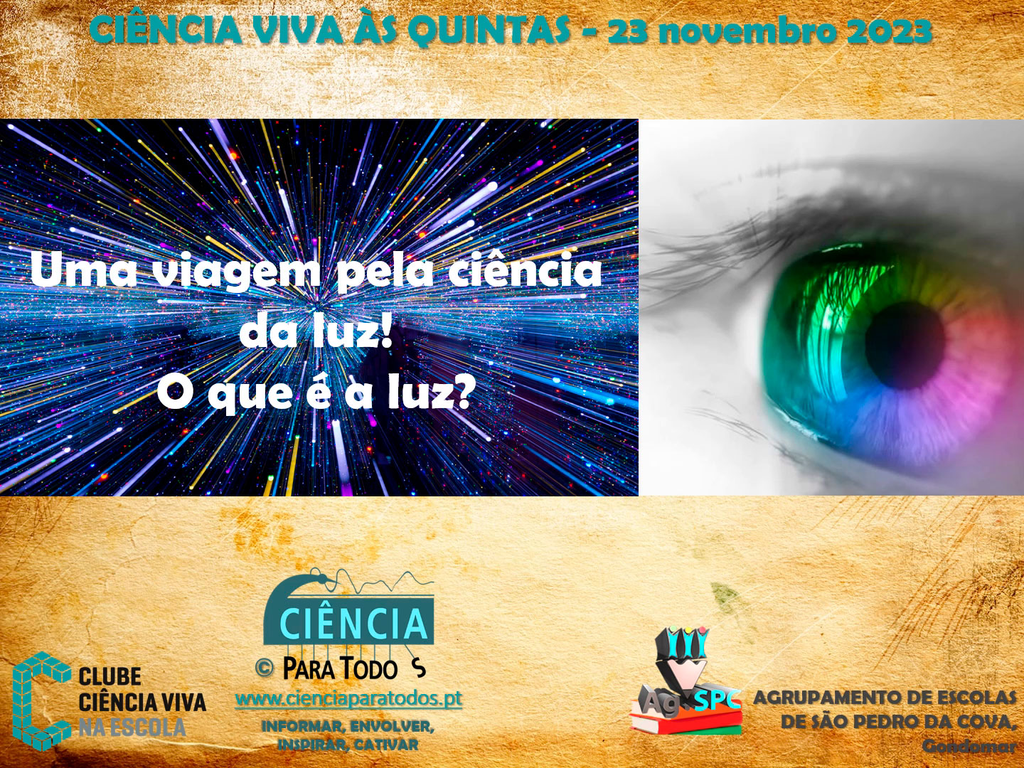 As atividades do Projeto de Divulgação Científica - CIÊNCIA PARA TODOS (www.cienciaparatodos.pt) continuam a sua caminhada pela ciência e tecnologia para todos no Clube Ciência Viva na Escola do AESPC. Esta quinta-feira fizemos uma breve viagem pelo "Mundo da Luz"! Afinal, o que é a luz? Podemos dizer que a luz é uma onda eletromagnética (propaga-se no vácuo) e transporta energia. Quando falamos de luz, pensamos na parte visível, mas existem outros tipos de luz que o olho humano não deteta, como as micro-ondas, os ultravioletas (UV) ou os infravermelhos (IV).