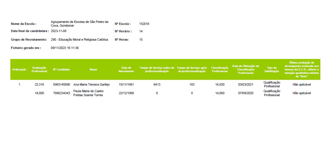 Já se encontra disponível a lista ordenada de graduação para o grupo de Educação Moral e Religiosa Católica - 290.