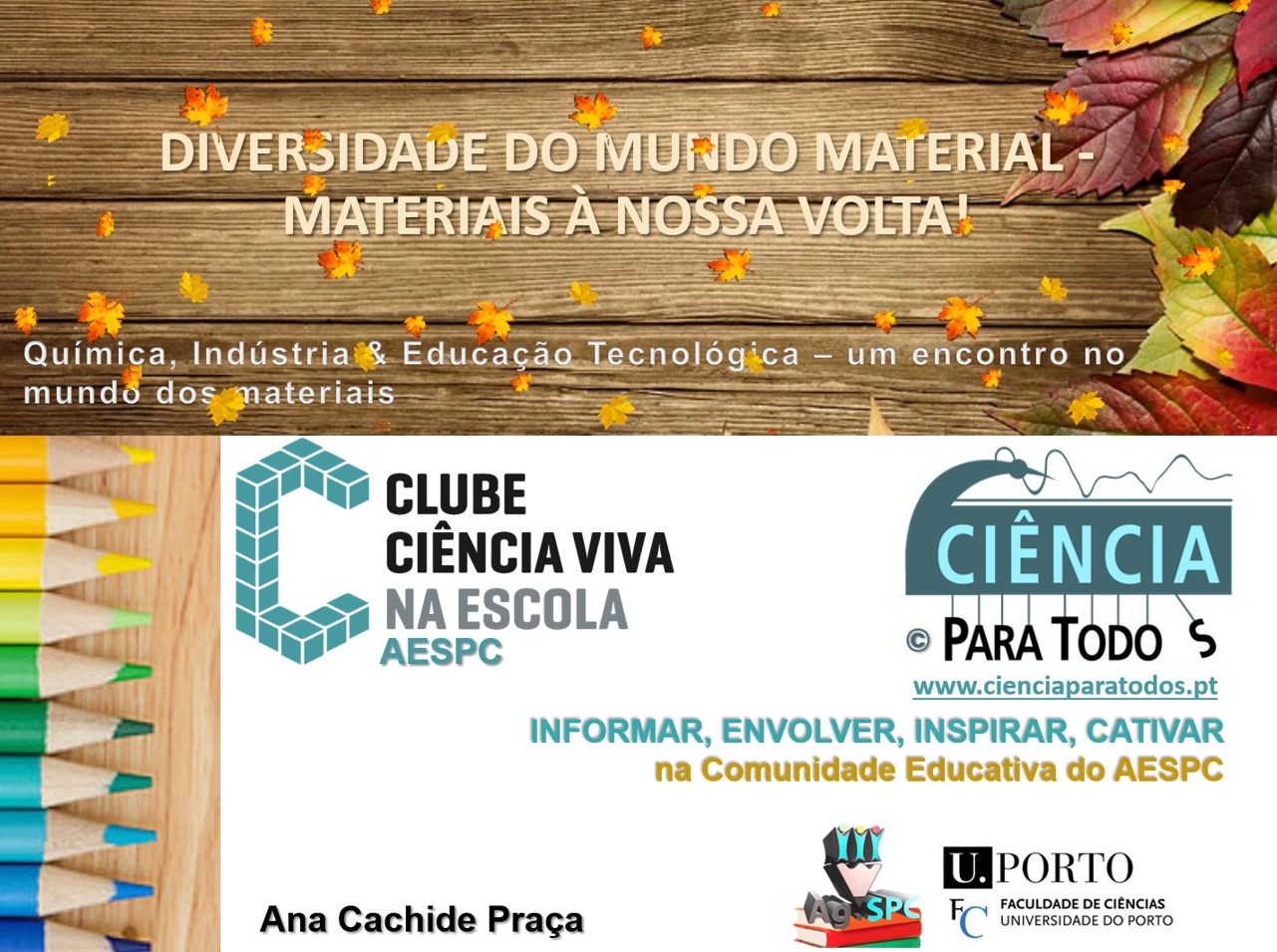 O Clube Ciência Viva na Escola e o seu parceiro de atividades, o PDC - CIÊNCIA PARA TODOS (www.cienciaparatodos.pt), marcaram um encontro no Mundo dos Materiais para fazerem uma breve viagem pela QUÍMICA, INDÚSTRIA & EDUCAÇÃO TECNOLÓGICA com os alunos do 9ºA e do 9ºF. Foi uma conversa curiosa e interessante para recordar e consolidar ideias, mas, também, para conhecer e refletir sobre outros saberes que se cruzam na transversalidade e interdisciplinaridade da Química, Indústria e Educação Tecnológica. Obrigada, Professora Cecília Costa! Obrigada, Professora Filomena Rocha! Obrigada pelo convite e por abrirem as portas das salas de aula ao Clube Ciência Viva na Escola e ao seu parceiro de atividades.