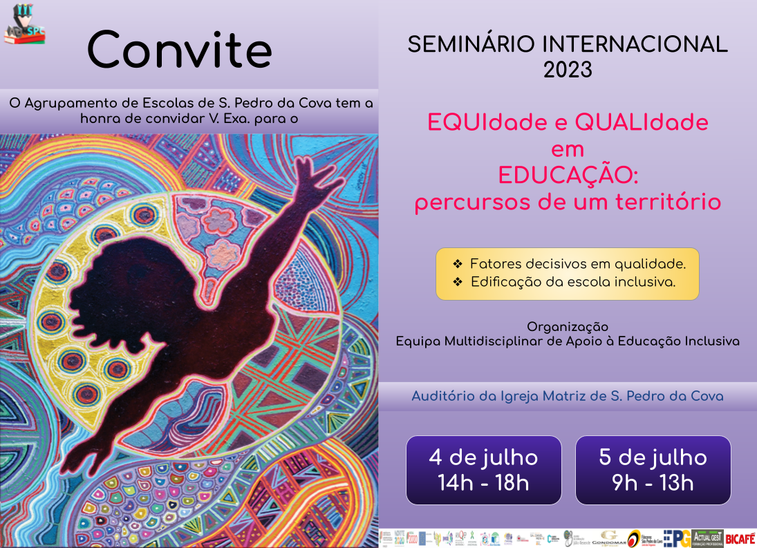 Divulga-se, a toda a comunidade educativa, o endereço do site “SEMINÁRIO INTERNACIONAL EQUIDADE E QUALIDADE EM EDUCAÇÃO”, que se realizará nos dias 4 e 5 de julho no auditório da Igreja Matriz de São Pedro da Cova.
