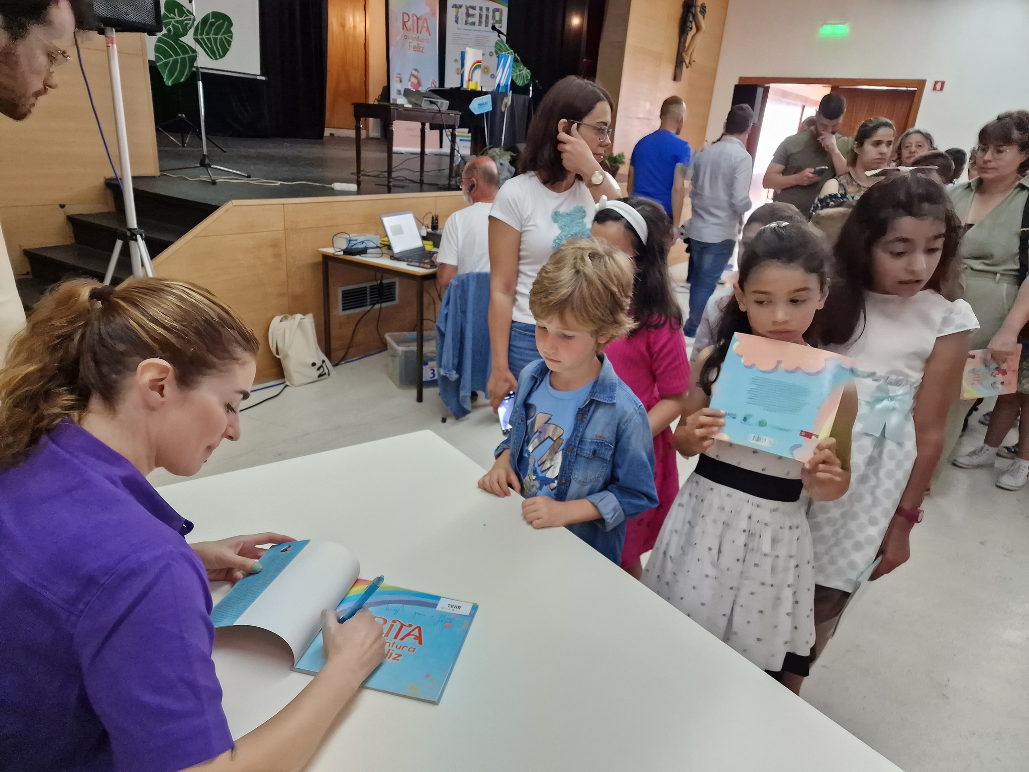 Em parceria com a Equipa do Projeto TEIIA, dinamizámos um conjunto de sessões de Gestão das emoções, Promoção da Saúde e Atividade física às turmas de 1º ciclo. O projeto culminou no com o espetáculo "Rita e a Aventura Feliz" que decorreu no 3 de Junho no auditório da Igreja de S. Pedro da Cova. Os Encarregados de Educação foram convidados a participar no evento, edificado em parceria com a empresa Betweien e que contou com a participação especial da artista Rita Redshoes. Realizou-se um mini-concerto com as músicas que a Rita compôs para o livro com o mesmo tema. Foi também apresentada uma performance teatral sobre os temas: a gestão das emoções, a alimentação saudável e o exercício físico e, no final, todos os alunos foram presenteados com o livro "Rita e a Aventura Feliz" auto grafado pela artista!