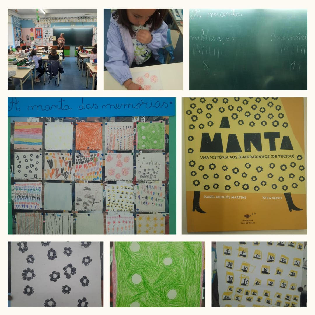 Depois de terminado, propôs-se a construção de uma manta, com todos os quadrados e decidiu-se escolher um nome para a manta. Surgiram duas sugestões a ”A manta das lembranças” e “A manta das memórias”. Procedeu-se à votação, tendo sido seleccionada “A manta das memórias”, que está exposta na sala de aula.