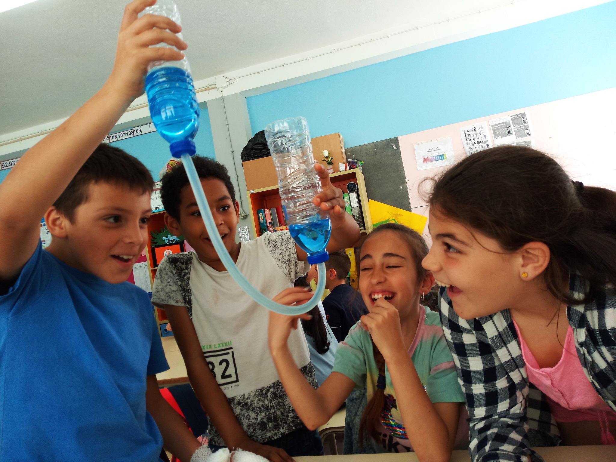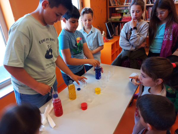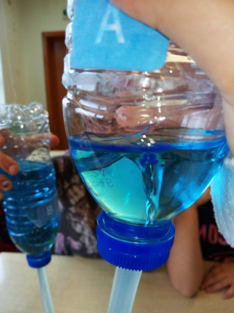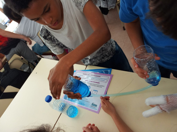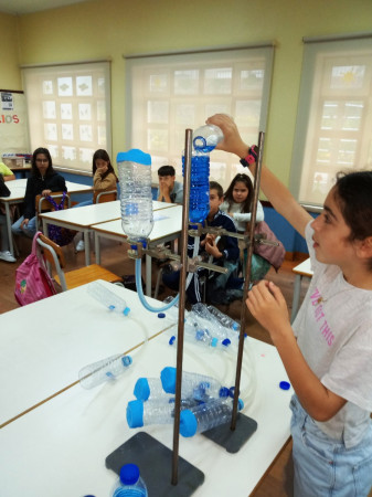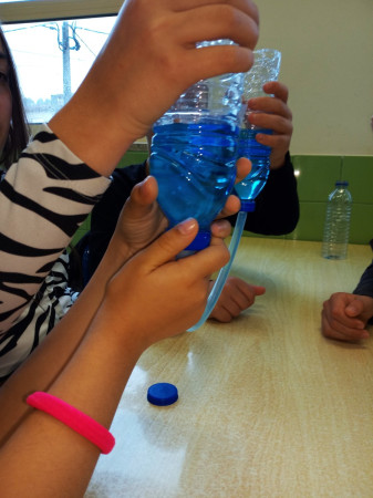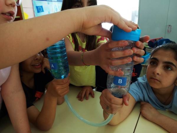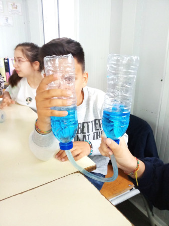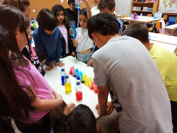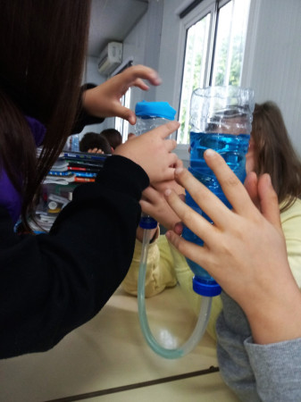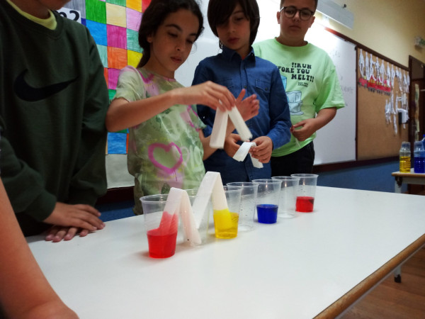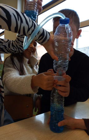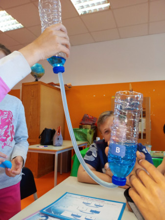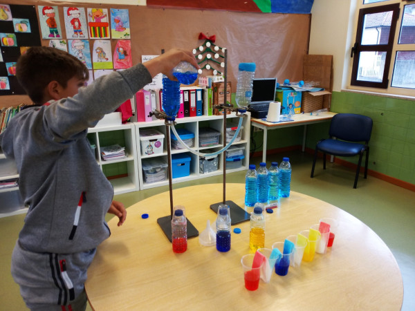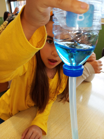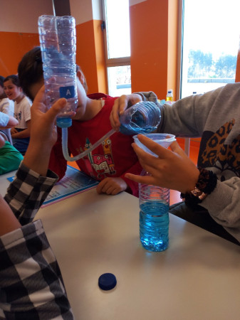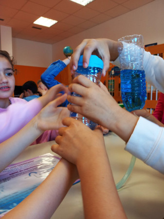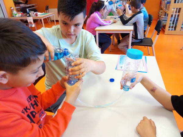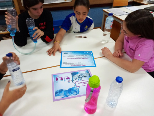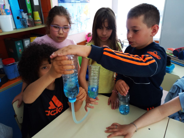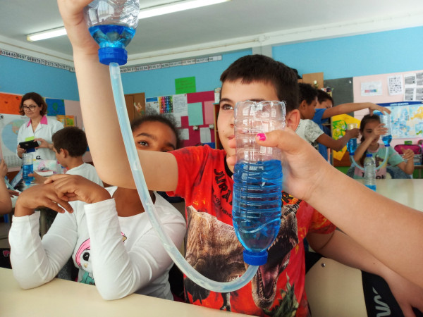Foi uma curiosa viagem pelos fluidos, onde a água líquida e o ar atmosférico foram os principais protagonistas. A água cobre mais de 70 % da superfície da Terra. Foi na água que a vida na Terra começou, pelo que não é surpreendente que todos os organismos que vivem no Planeta Azul necessitem de água. A água é, de facto, uma necessidade vital, um habitat, um recurso local e global, um corredor de transporte e um regulador do clima. A água existe de várias formas no seu próprio ciclo ou em ciclos criados através do engenho humano. Por que todas as nossas ações têm uma pegada hídrica associada, os “Pequenos Cientistas”, através do cenário de aprendizagem não formal criado pelo Clube CVnE, além de experienciarem o “Princípio dos Vasos Comunicantes” e o fenómeno da capilaridade (e respetivas aplicações no quotidiano/natureza) são sensibilizados para a disponibilidade deste bem essencial à vida e a desenvolver hábitos e comportamentos sustentáveis para que hoje, como ontem, continue a haver água!