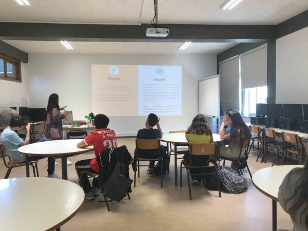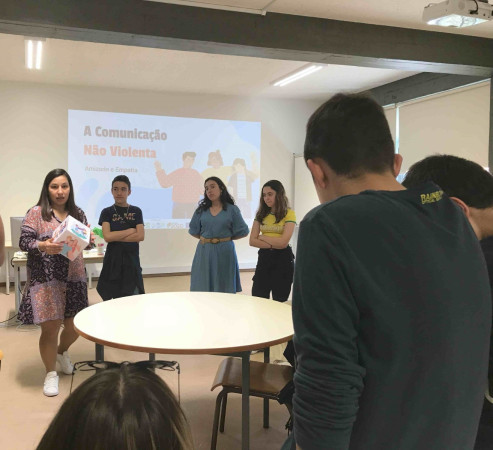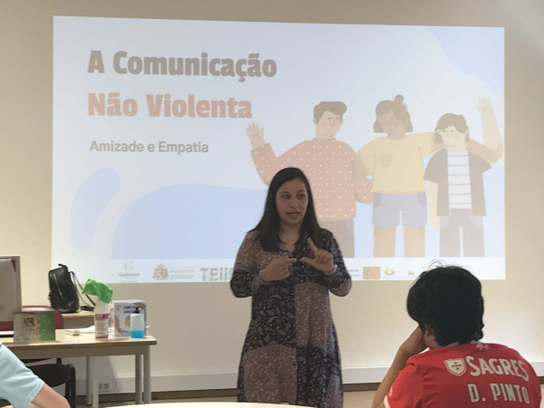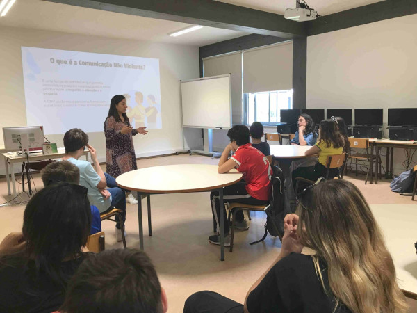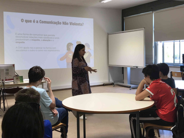 Ao longo da sessão os alunos tiveram a oportunidade de explorar conceitos de amizade e empatia, através da dinâmica de grupo “o cubo da amizade”, bem como reconhecer a importância da comunicação não violenta na forma como se escuta o outro e nos expressamos.