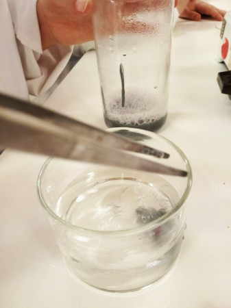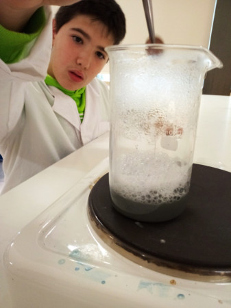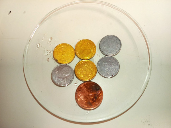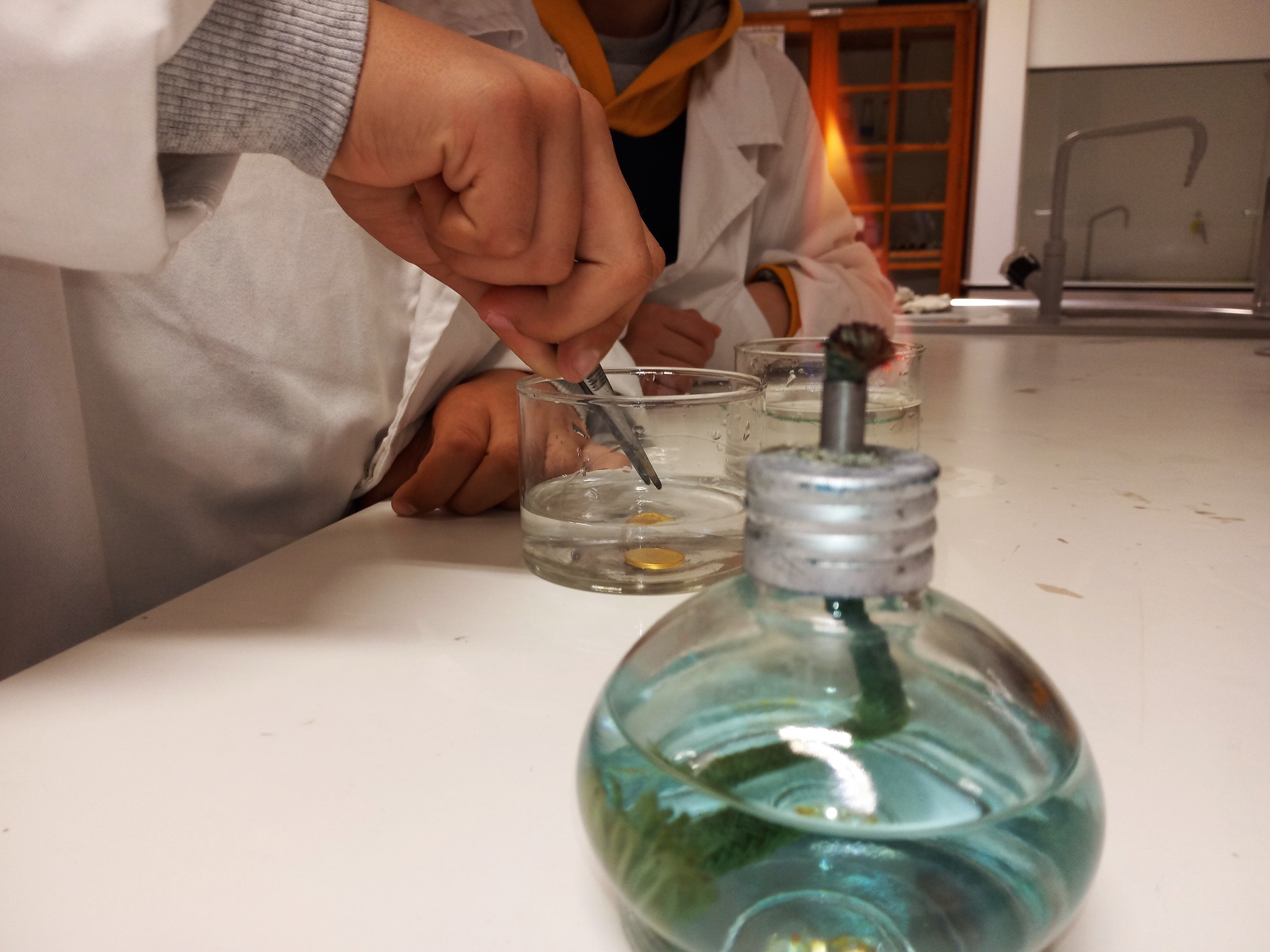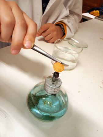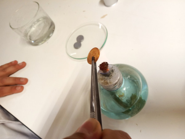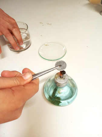A Alquimia era um conjunto de práticas e conhecimentos empíricos profundamente impregnados de alegorias, segredos, superstições e magia. Por exigir constante manipulação de materiais, aproximava-se muitas vezes da experimentação científica, como a entendemos atualmente. Eram dois os principais objetivos dos Alquimistas ou, pelo menos, da maioria deles: a transmutação de metais comuns (estanho, chumbo, cobre) em ouro, para o que buscavam um misterioso ingrediente, a “pedra filosofal”; e a descoberta de uma substância capaz de curar todas as doenças e de conferir a vida eterna, ou seja, o “elixir da longa vida”. A conversa desta tarde no Clube CVnE foi, assim, bem interessante e repleta de entusiasmo. A curiosidade e as expectativas (do que iria acontecer no laboratório) dos “Jovens Exploradores da Ciência” foram ao rubro e o desafio estava na mesa de trabalho! Preparar e organizar os materiais/equipamentos de laboratório e reagentes químicos necessários para transformar moedas de um cêntimo em moedas de “prata” e de “ouro”. Cumprir as regras de segurança e meter “as mãos na massa”.