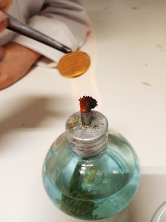 Afinal, o que aconteceu? Calma! Esta não é a resposta ao sonho dos Alquimistas. Nós não transformamos cobre em prata, muito menos prata em ouro. Aqui estão em ação as reações químicas de oxidação-redução. Quando se aqueceu a moeda em contacto com o zinco, este depositou-se na sua superfície dando-lhe um aspeto prateado. Quando se aqueceu a moeda prateada à chama da lamparina, o zinco depositado, reagiu com o cobre (principal constituinte da moeda) formando uma liga metálica de cor dourada (latão). Embora não sejam de prata e de ouro, vamos guardar estas moedas que são valiosas, pois simbolizam um sonho dos nossos antepassados e demonstram como a Química é mesmo fascinante e está mesmo em todo o lado!