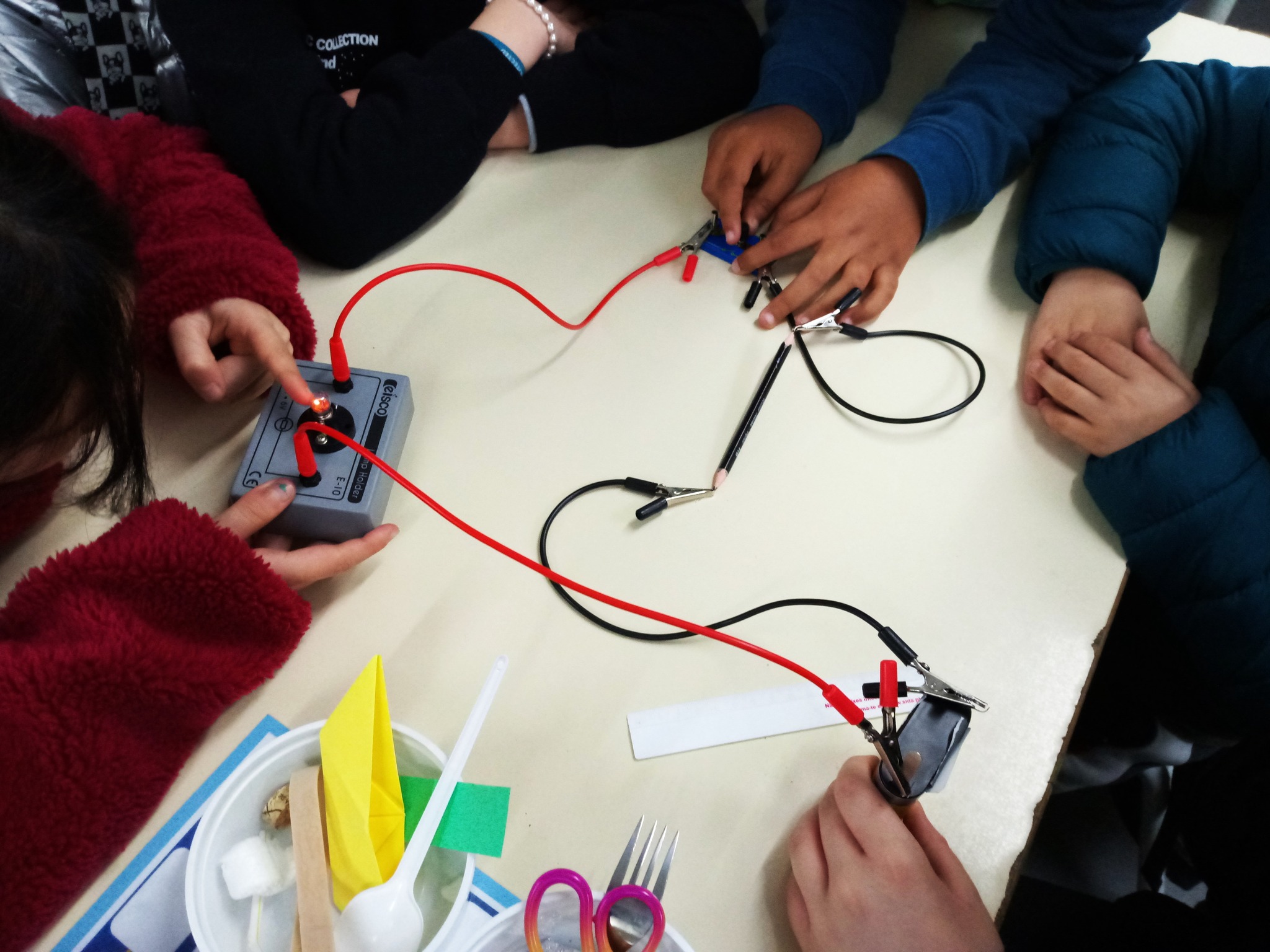 Aceitaram os desafios, que estavam na mesa de trabalho, com muita curiosidade, entusiasmo e empenho. Afinal, não é todos os dias que andamos a explorar a corrente elétrica sem ficar com os cabelos em pé! Os “Pequenos Cientistas” tinham à disposição os componentes básicos para construir circuitos elétricos simples e diversos objetos do dia a dia (constituídos por materiais diferentes) para investigar materiais que são bons condutores da corrente elétrica. Mas, o que acontece quando nos apercebemos que estamos rodeados de muitos e diferentes objetos? E, até, vestimos e calçamos objetos de materiais diversos? A resposta é simplesmente deliciosa. A curiosidade e o entusiasmo dos "Pequenos Cientistas" foi ao rubro numa explosão de alegria! Afinal, a Ciência está mesmo em todo o lado!