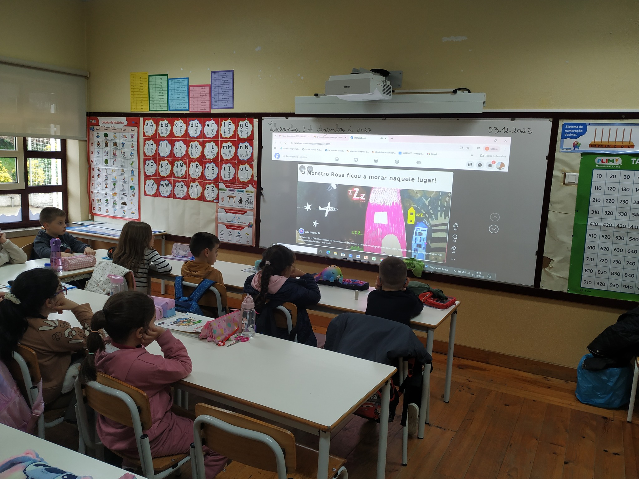 Consistiu no visionamento de uma história cujo título foi” O Monstro Rosa”, seguiu-se um diálogo/reflexão sobre as desigualdades sociais e preconceito, trabalhando a inclusão social.