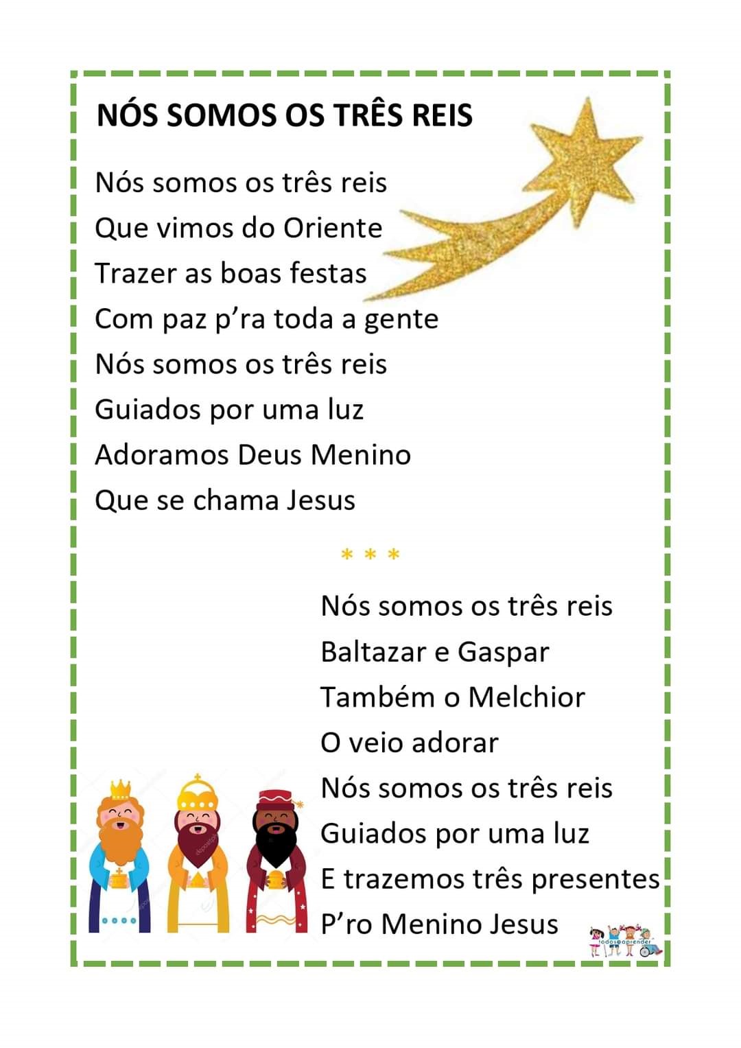 Ainda nesse dia, na turma do 1ºano foi trabalhada a compreensão oral da canção “Nós Somos os Três Reis”.