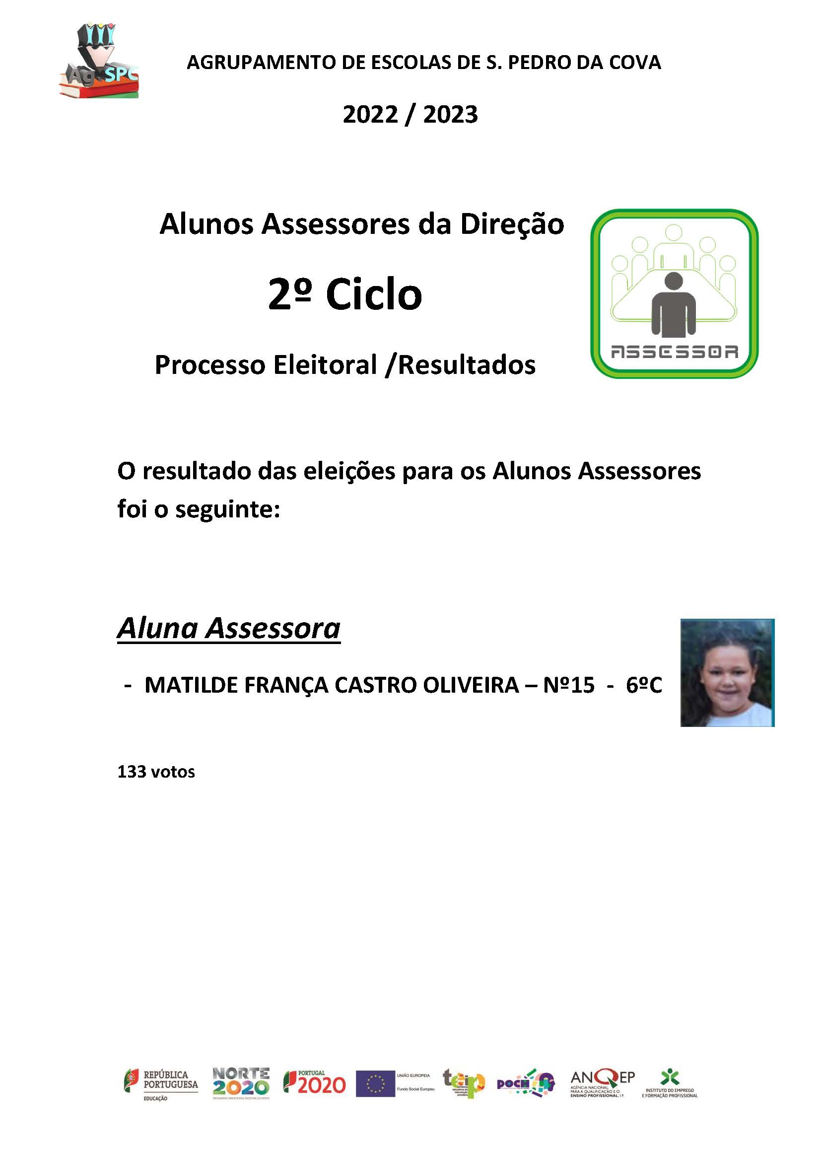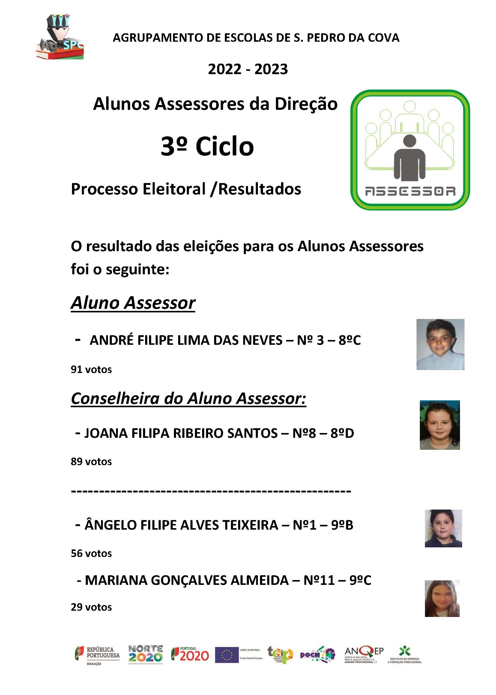 Informa-se toda a comunidade educativa que se encontram disponíveis os resultados eleitorais "Alunos Assessores da Direção 2022/2023".