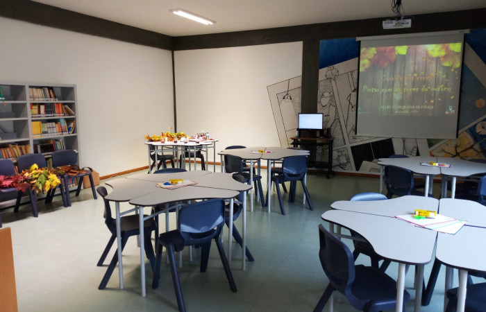 A manhã de 25 de novembro foi colorida de Ciência, Tecnologia e Arte. A Biblioteca Escolar transformou-se numa paleta de cores de OUTONO! Estas vestem algumas árvores e "somos presenteados" todos os anos com