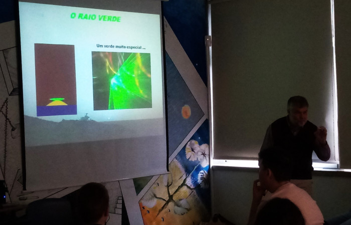 O Clube Ciência Viva na Escola do Agrupamento de Escolas de São Pedro da Cova está a celebrar com a Comunidade Escolar a Semana da C&T 2022. Durante a manhã de 23 de novembro recebemos um Cientista na nossa Escola. O Professor Doutor José Luís Santos da FCUP esteve à conversa sobre "O Raio Verde". Para onde nos levou? Fizemos uma "Visita a fenómenos óticos na atmosfera, do Paleolítico até à era moderna. O papel crucial da atmosfera como interface entre o Homem e o Cosmos. A Terra vista do Espaço. Por que é que o céu é azul? Por que é que as nuvens são brancas? Porque é que o Sol é vermelho no nascer e no ocaso? O arco-íris ou a ponte entre a poesia e a ciência. Padrões de luz em torno do Sol e da Lua. Raios crepusculares. A sombra da Terra. Auroras. Fenómenos elétricos na atmosfera. Miragens. O Raio Verde e a história bonita do romance de Júlio Verne." Foi uma manhã repleta de muita curiosidade, encanto e saber por fascinantes fenómenos óticos na atmosfera.