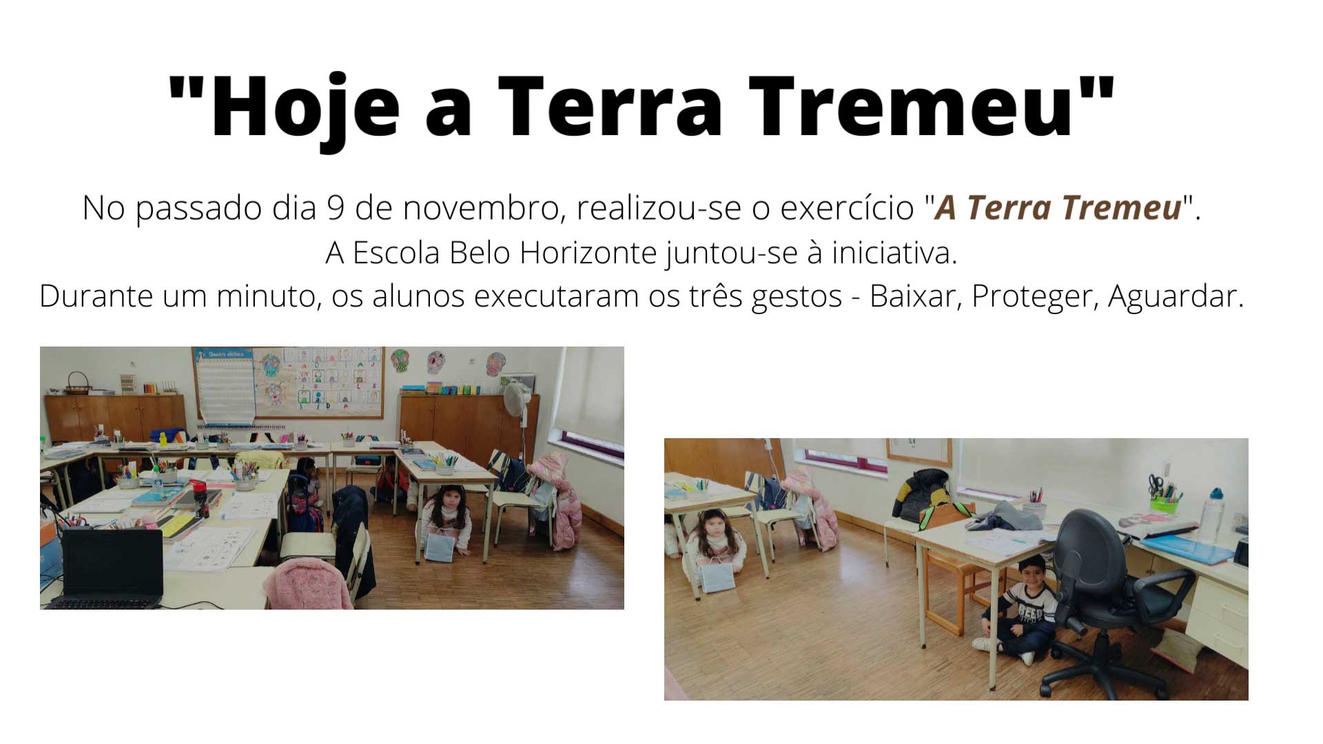 No passado dia 9 de novembro, realizou-se o exercício "A Terra Tremeu". A Escola Belo Horizonte juntou-se à iniciativa. Durante um minuto, os alunos executaram os três gestos - Baixar, Proteger, Aguardar.