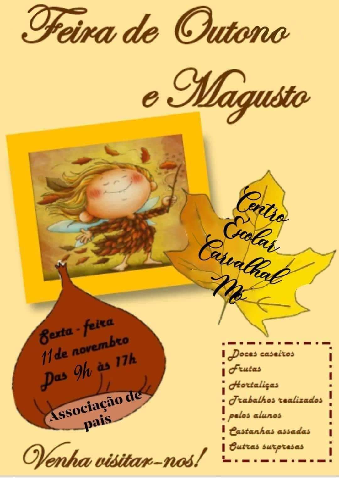 Informa-se toda a comunidade educativa que irá realizar-se no Centro Escolar Carvalhal/Mó, no dia 11 de novembro, às 9 horas, a Feira de Outono e Magusto. Esta atividade é promovida pela Associação de Pais do Centro Escolar.