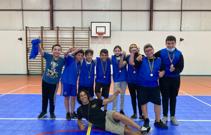 Os alunos participantes jogaram com muito empenho e fair-play, tendo vencido as eliminatórias o 5.º D.
