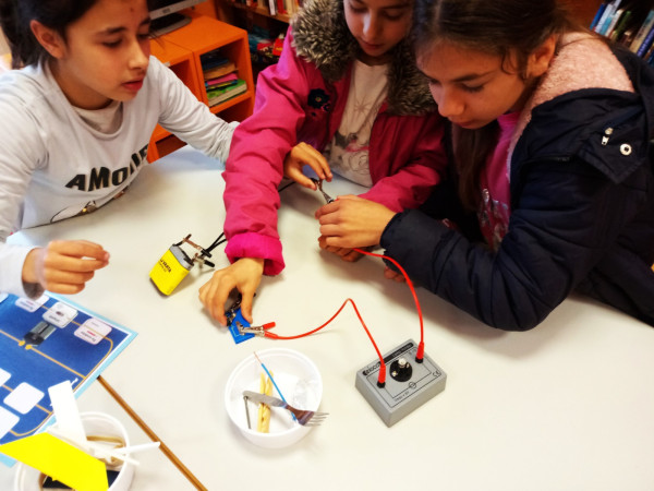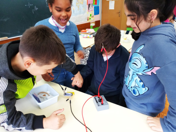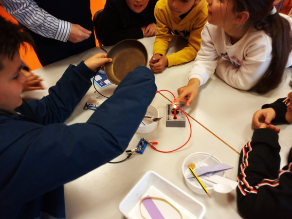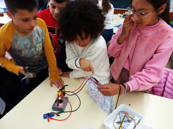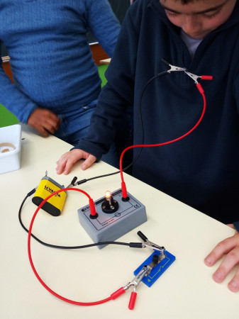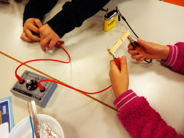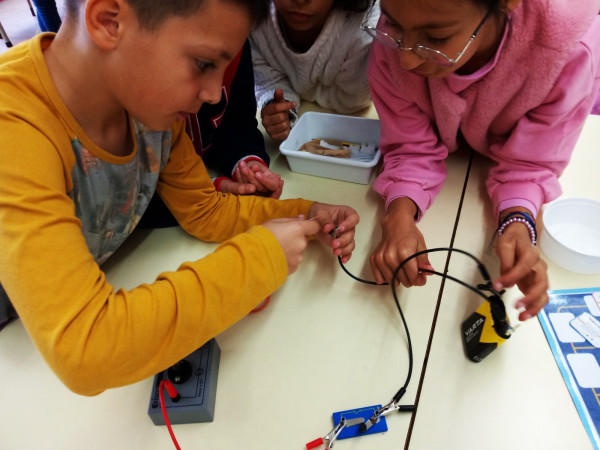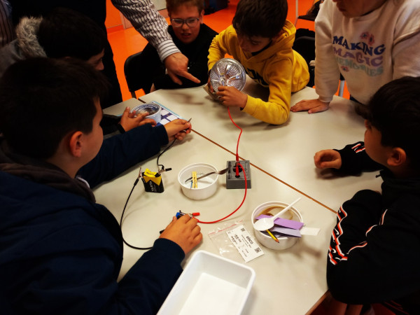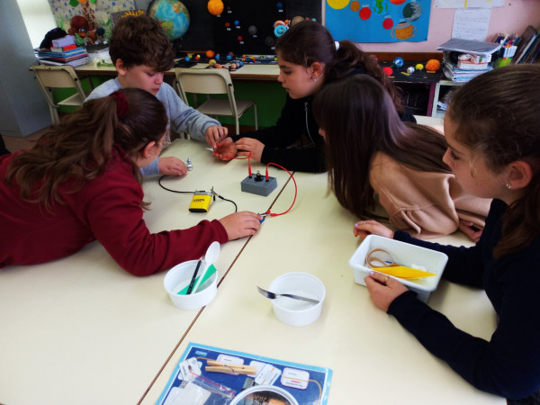 O desafio estava na mesa de trabalho! Os “Pequenos Cientistas” tinham à disposição os componentes básicos para construir circuitos elétricos simples e diversos objetos do dia a dia constituídos por materiais diferentes para investigar materiais que são bons condutores da corrente elétrica. De uma colher ao lápis, passando por uma rolha, clipe ou elástico, até à caneta, pregos, palhinhas e folhas de alumínio, nenhum objeto presente na mesa ficou de fora para identificar os materiais que os constituem como bons ou maus condutores elétricos. Mas, rapidamente, a curiosidade e o entusiasmo foram ao rubro, quando estes exploradores da ciência perceberam que estavam rodeados de muitos e diferentes objetos! E que vestiam, também, objetos de materiais diversos. Afinal, a Ciência está mesmo em todo o lado! Foi uma fantástica aventura onde houve espaço para criar, fazer, experimentar, construir e partilhar, onde tentativa e erro se conjugaram de forma divertida e inspiradora.