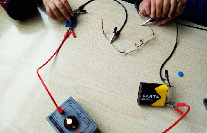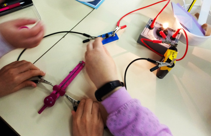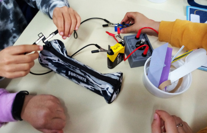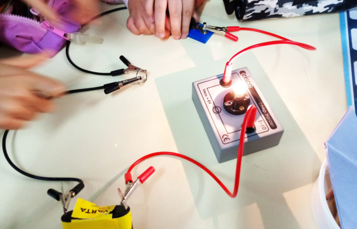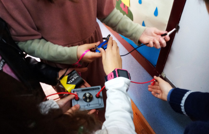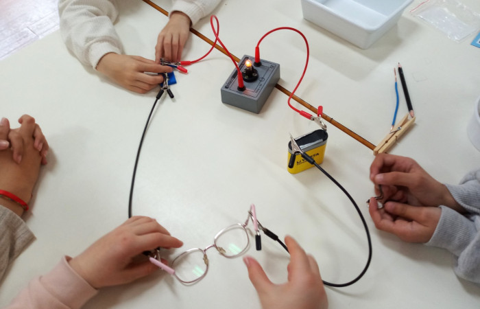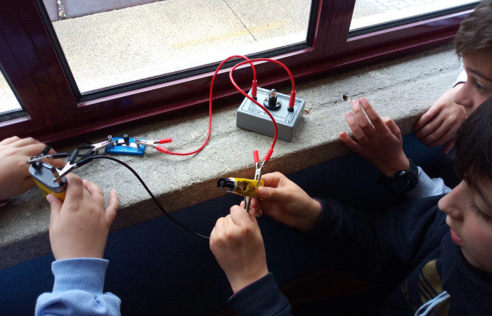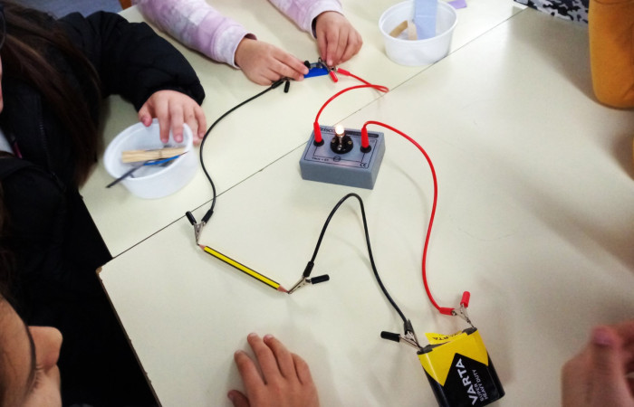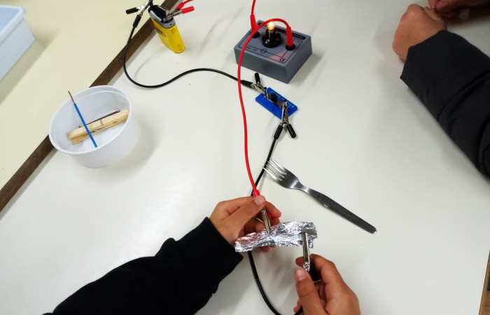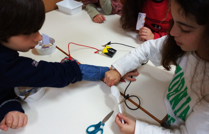 Aceitaram os desafios, que estavam na mesa de trabalho, com muita curiosidade, entusiasmo e empenho. Afinal, não é todos os dias que andamos a explorar a corrente elétrica sem ficar com os cabelos em pé! Os “Pequenos Cientistas” tinham à disposição os componentes básicos para construir circuitos elétricos simples e diversos objetos do dia a dia (constituídos por materiais diferentes) para investigar materiais que são bons condutores da corrente elétrica. Mas, o que acontece quando nos apercebemos que estamos rodeados de muitos e diferentes objetos? E, até, vestimos e calçamos objetos de materiais diversos? A resposta é simplesmente deliciosa. A curiosidade e o entusiasmo dos "Pequenos Cientistas" foi ao rubro numa explosão de alegria! Afinal, a Ciência está mesmo em todo o lado!